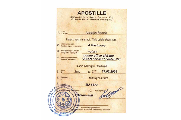 Sample Apostilled Document for Azerbaijan